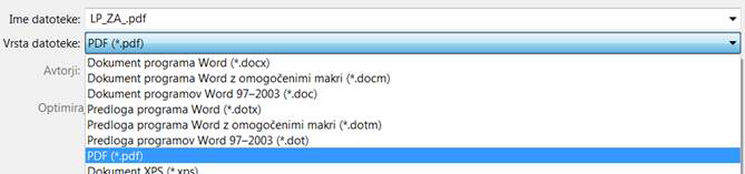 PRIPRAVA PDF DATOTEKE IZ WORD DOKUMENTA ALI EXCEL PREGLEDNICE: