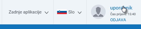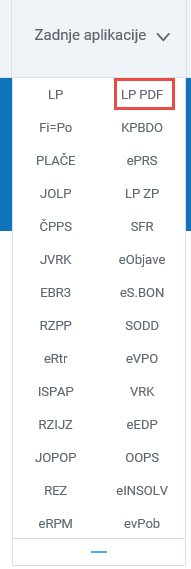 - ali spustnega menija Zadnje aplikacije (na vrhu spletnega portala)